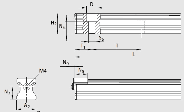 2)對于規格20-45,精度N,H和P的滾珠導軌,單段供貨長度