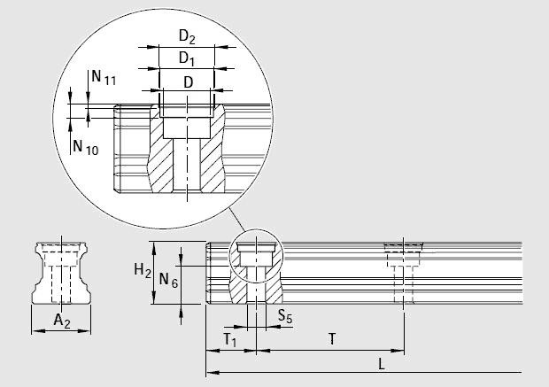 2)對于規(guī)格20-45,精度N,H和P的滾珠導軌,單段供貨長度